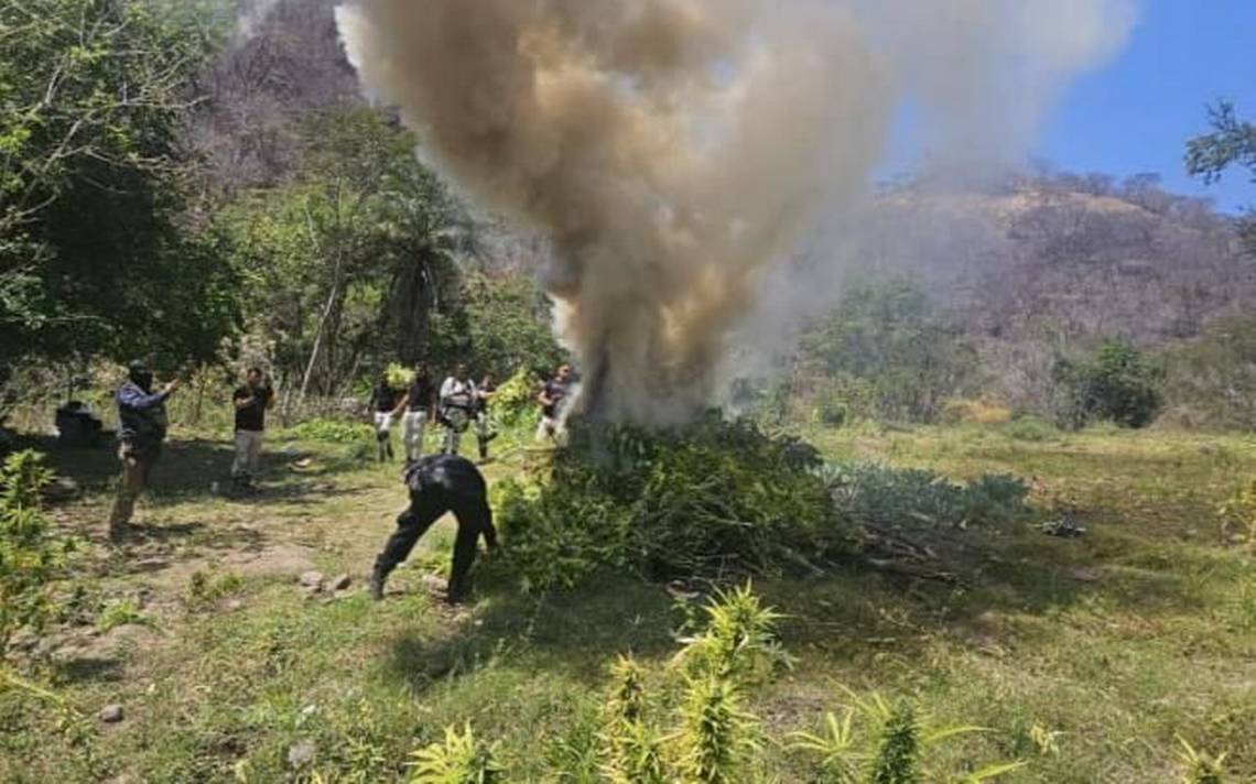 La droga fue encontrada en la localidad de Las Calabazas y en coordinación con elementos de la Secretaría de la Defensa Nacional (Sedena), Guardia Nacional y la Fiscalía General del Estado (FGE) fueron encontrados tres plantíos de esta hierba.