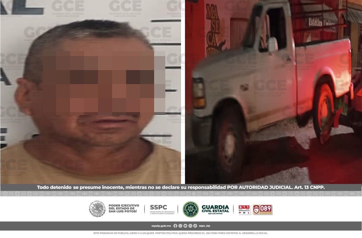 Los hechos tuvieron lugar durante los recorridos en el eje carretero Rayón-Cárdenas, ahí fue detenido Juan “N” de 56 años de edad, quien se desplazaba a bordo de una camioneta marca Ford, color blanco, de forma temeraria y sin las precauciones debidas, lo que provocó daños a las cosas.