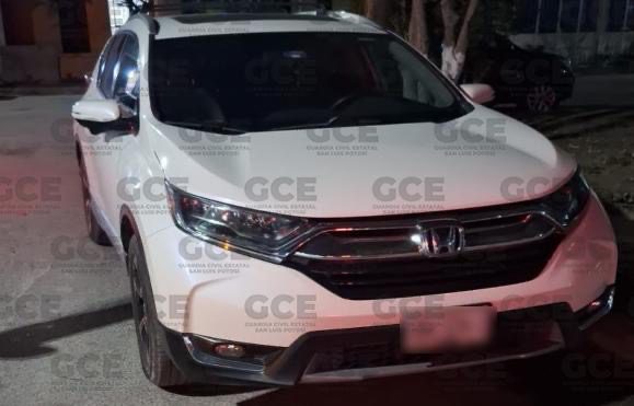 Un vehículo Honda CRV, modelo 2018, color blanco, robado en la colonia Lomas Cuarta Sección, fue recuperado abandonado y cerrado en el fraccionamiento San José Segunda Sección en el municipio de Soledad de Graciano Sánchez.