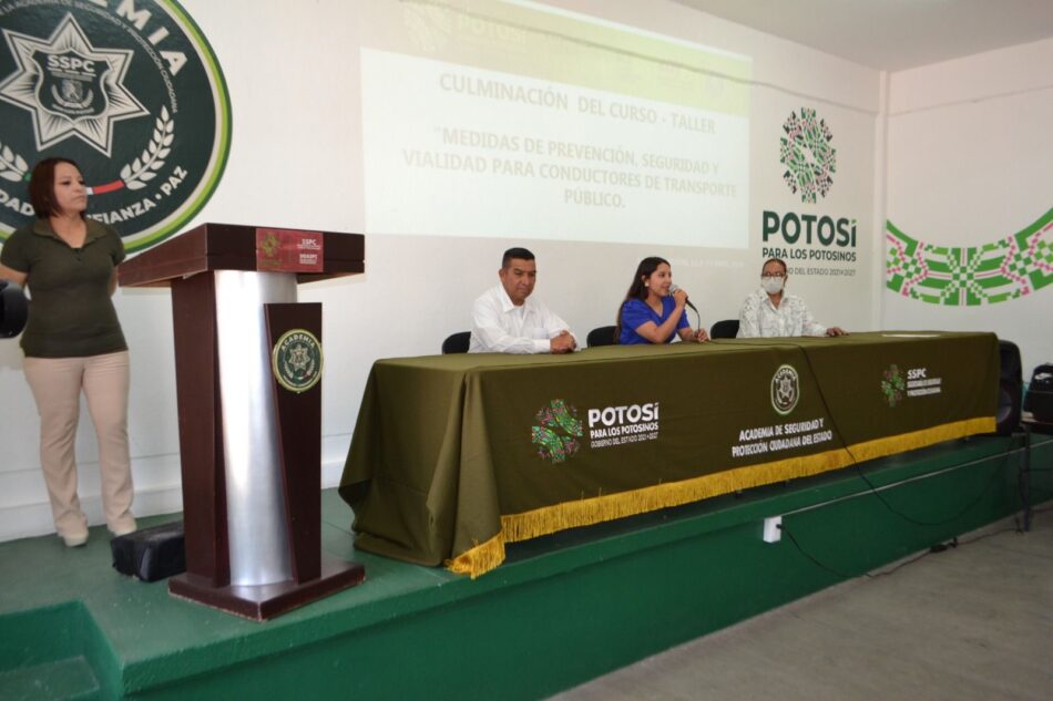 En colaboración con la Secretaría de Comunicaciones y Transportes, la SSPCE contribuye a reforzar la cultura de seguridad vial, al capacitar a conductores del transporte público, en aspectos fundamentales en medidas prevención, seguridad y vialidad previstas en el marco jurídico, aplicables en las vías de comunicación instaladas en el Estado de San Luis Potosí.