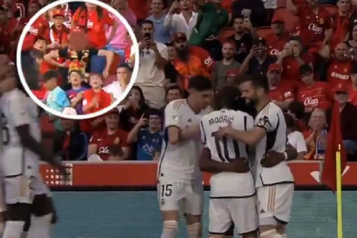 Un joven aficionado imit este sbado los gestos de un mono en una de las gradas de Son Moix tras el gol del francs Aurlien Tchouamni que dio la victoria al Real Madrid (0-1) ante el Mallorca, segn recogen las cmaras de Movistar +.
