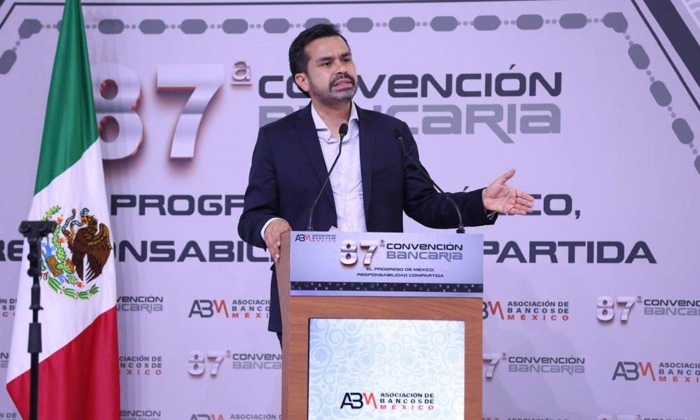Durante la convención Bancaría, el candidato a la presidencia de Movimiento Ciudadano Jorge Álvarez Máynez pidió a los empresarios y bancarios su voto de confianza este próximo 2 de junio.