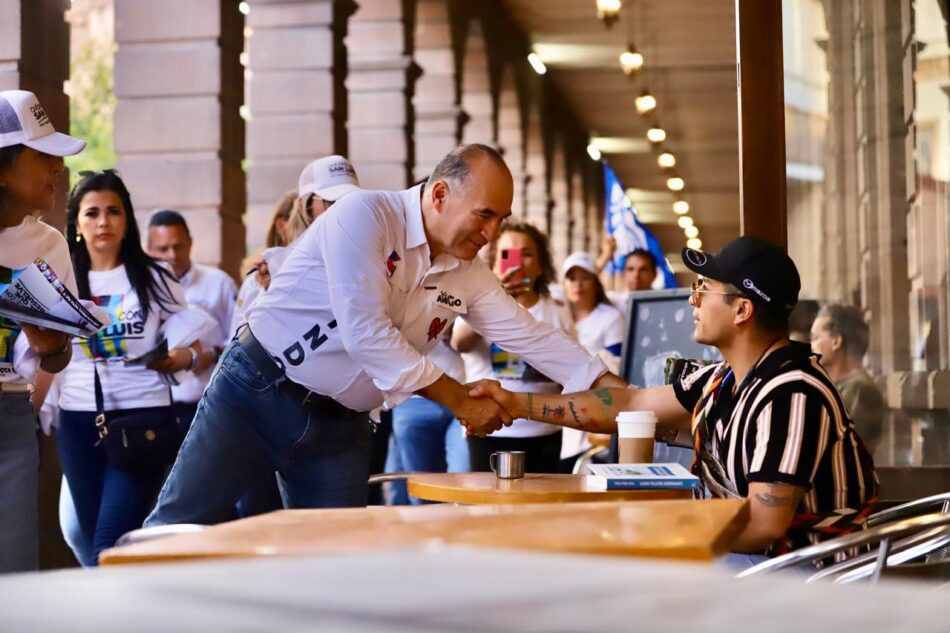 El candidato a la presidencia municipal por la coalición “Fuerza y Corazón por San Luis,” Enrique Galindo Ceballos, realizó un recorrido por el Centro Histórico, en el que saludó a cientos de capitalinos y capitalinas que paseaban por el primer cuadro de la ciudad, ante quienes expuso los avances alcanzados en los últimos tres años en el municipio y también recibió las inquietudes de la ciudadanía.