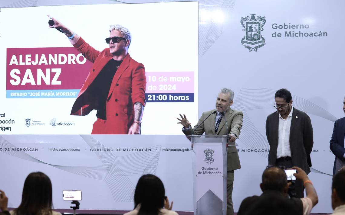 Morelia, Michoacán.- El 10 de mayo se presentará el cantante español Alejandro Sanz como parte de los conciertos gratuitos del Festival Michoacán de Origen.
