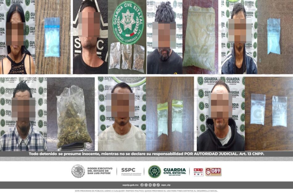 S.L.P.- Mediante los patrullajes de seguridad y vigilancia, desarrollados por oficiales de la Guardia Civil Estatal (GCE), 19 personas resultaron detenidas por el probable delito de posesión de droga tras los distintos operativos en todo el territorio potosino.