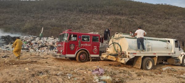 Landa de Matamoros, Qro.- La tarde de este domingo como a las 15:00 horas se activó un incendio en el basurero municipal de Landa de Matamoros, desde entonces cuerpos de emergencias tratan de contener el incendio, del cual se desconocen las causas que lo iniciaron, no se reportan personas lesionadas, por fortuna.