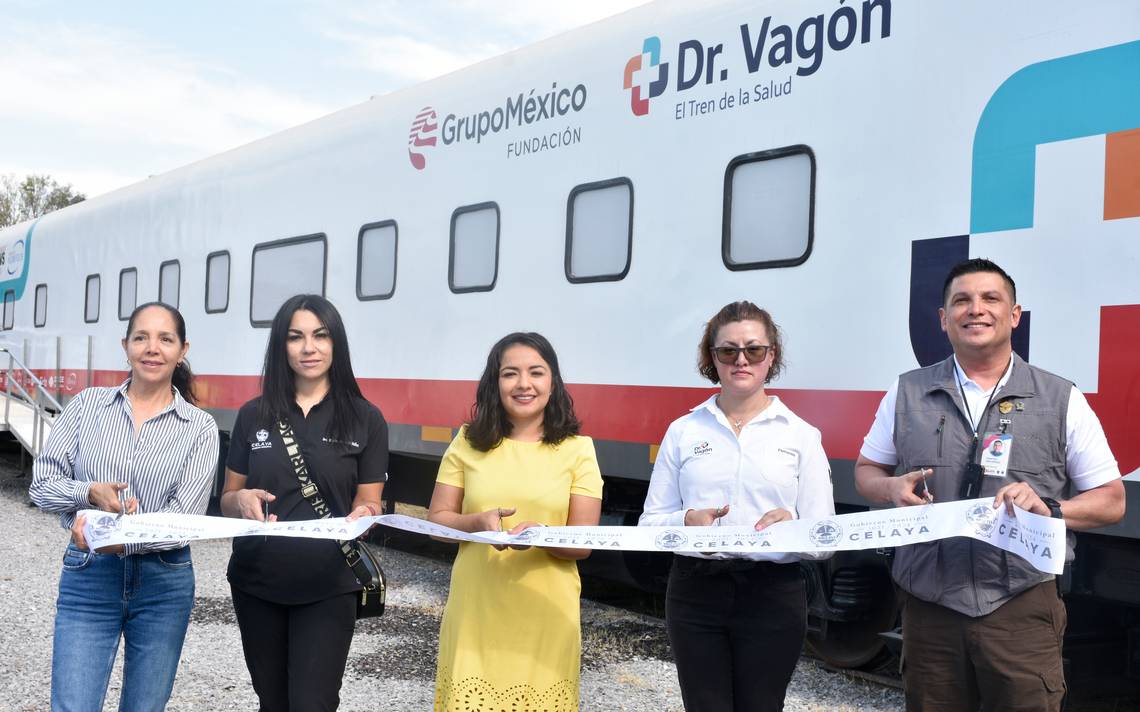 CELAYA, Gto.- La presidenta municipal provisional María de la Salud García Rodríguez inauguró los servicios del Dr. Vagón de la Fundación Grupo México que por tercer año consecutivo está de visita en Celaya para ofrecer servicios y atención médica gratis a las y los celayenses. “El Tren de la Salud estará un día más que los dos años anteriores, y desde ayer y hasta el 5 de mayo. Se atenderán 500 personas diarias.