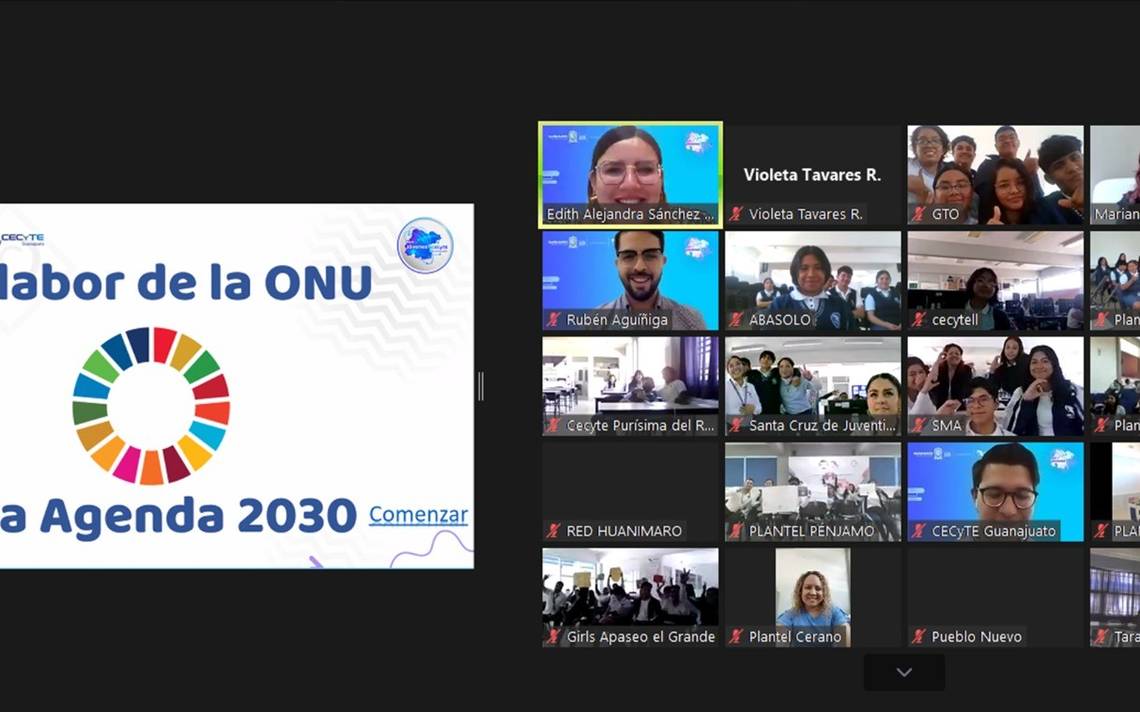 CELAYA,Gto.- Más de 600 estudiantes que forman parte de la Red de Jóvenes y que pertenecen al Colegio de Estudios Científicos y Tecnológicos del Estado de Guanajuato (CECyTEG), participaron, vía online, en la conferencia: “La Labor de la ONU y la Agenda 2030”, impartida por Mariana Castro Álvarez, Oficial Nacional de Información de la Organización de las Naciones Unidas.