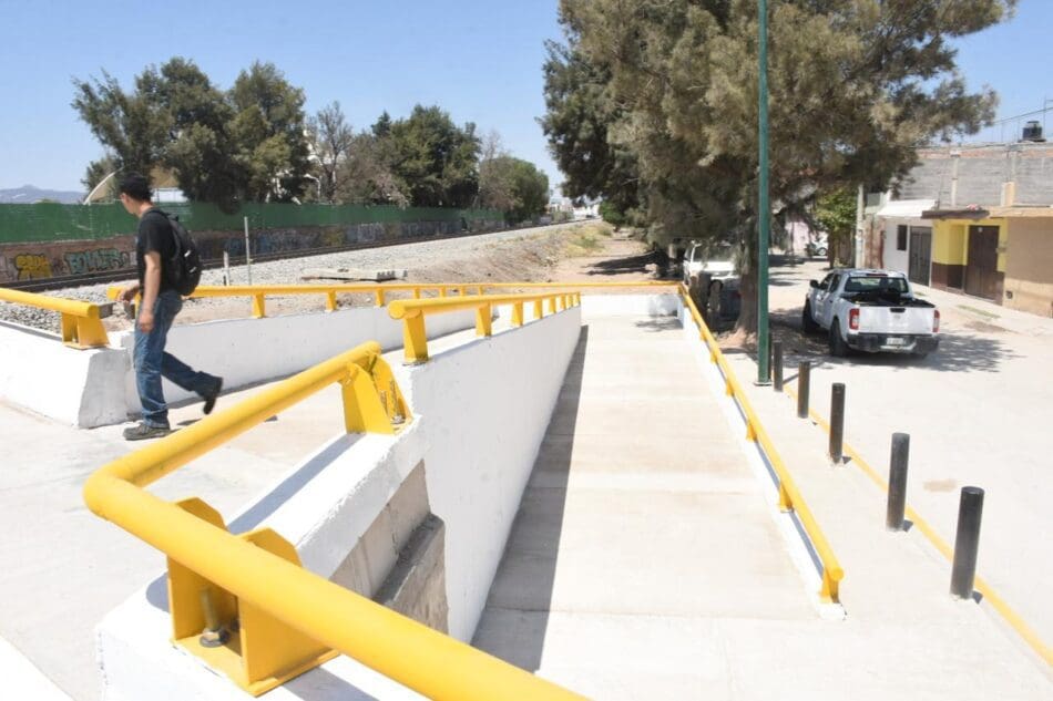 La obra en la que se invirtieron 23 millones de pesos consistió en la construcción de rampas de terracería confinadas con muros de contención de concreto hasta nivel de cruce con las vías del tren, se construyó el paso peatonal con rampas, se incluyeron estructuras y obras de drenajes de red pluvial y sanitaria, se aplicó base hidráulica y carpeta asfáltica, se rehabilitaron áreas verdes y se renovó el alumbrado público, así como la instalación de señalamientos.