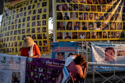 La tarde es soleada en la ciudad, agradable. La gente que pasea por el jardín central mira las lonas que han colocado las familias de los desaparecidos en el kiosco, fotos de cientos de caras de gente que no está en casa, el reverso angustioso de la eufórica propaganda electoral que aquí, como en todo el país, inunda las calles. Otra tía del muchacho Ortega se acerca. Tiene también un hijo desaparecido, este desde octubre de 2022. “Yo cuando vienen les pregunto qué es para ellos el tema de los desaparecidos”, dice, en referencia a los políticos. “Porque ahora es que te entregan el cuerpo y dicen que ya se acabó, pero no, no, yo quiero saber qué pasó”, dice.