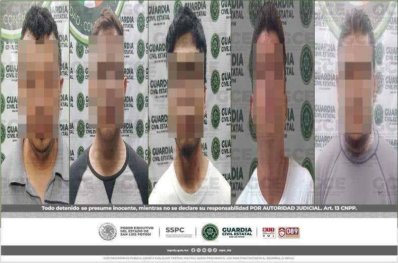 S.L.P.- Gracias a las denuncias y reportes atendidos en la Línea de Emergencias 911, agentes de la Guardia Civil Estatal (GCE), detuvieron a cinco personas por el presunto delito de violencia familiar, uno de ellos acusado de privar ilegalmente de la libertad a su pareja sentimental.