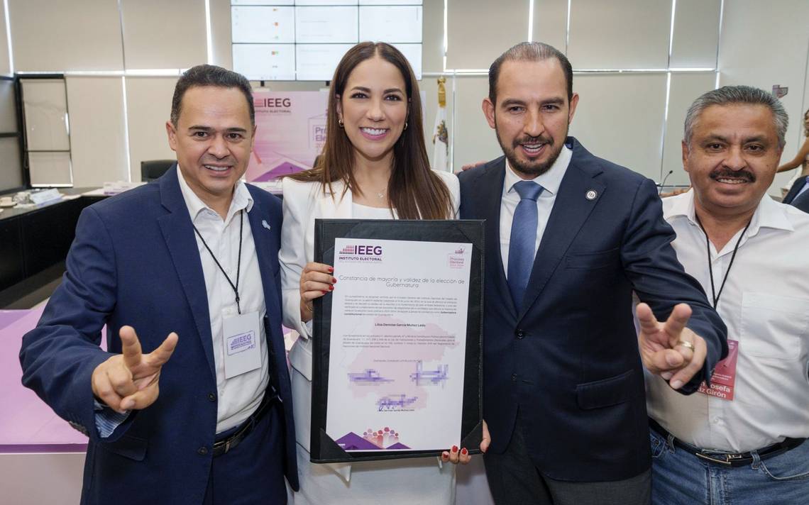 El Instituto Electoral del Estado de Guanajuato entregó la constancia de mayoría a Libia Dennise García Muñoz Ledo, acreditando su triunfo en las elecciones de 2024 por la gubernatura, con un total de votos de un millón 393 mil 801 sumando los votos de la coalición PAN, PRI y PRD.