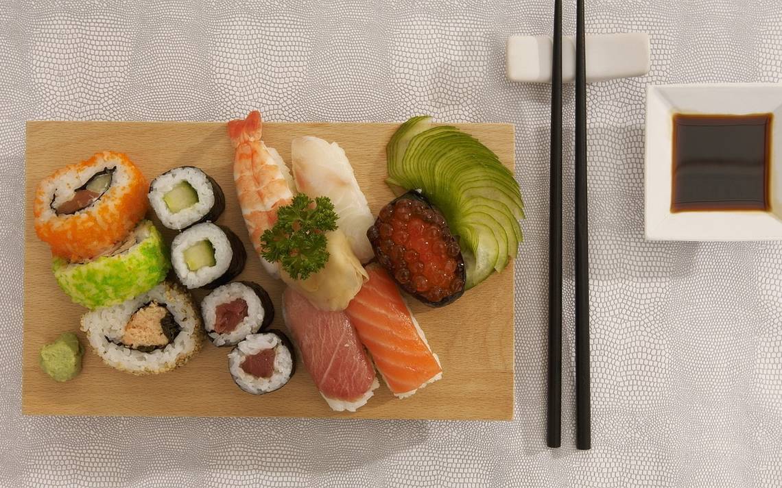 El sushi es una comida a base de arroz que se condimenta con vinagre de arroz, azúcar y sal, además se acompaña con algunos vegetales y mariscos o pescados crudos. Existen diferentes combinaciones aptas para todos los gustos.