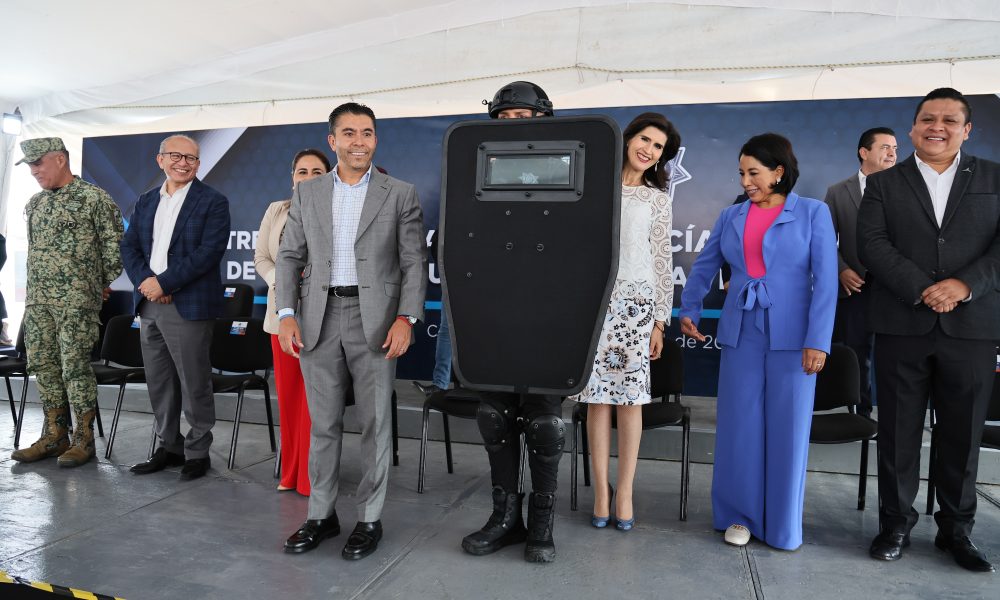 A nombre de sus compañeros, María Adriana García Gutiérrez, dijo sentirse orgullosa de su vocación y poder expresar su agradecimiento por la entrega del equipamiento para realizar la función policial, con lo que refrendó el compromiso de servir a la sociedad