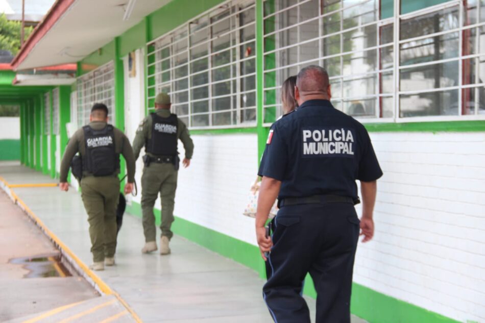 En un operativo conjunto entre autoridades estatales y municipales, diariamente se efectúan recorridos de supervisión y vigilancia en los planteles educativos del municipio.