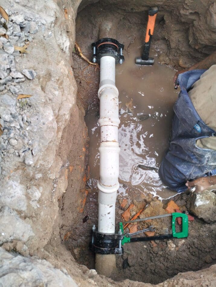 Pero en dicho punto los trabajadores que reconstruían el ducto del drenaje se percataron de la fuga de agua de un tubo de asbesto de tres pulgadas que tenía una pérdida significativa y que justamente se juntaba con el drenaje sanitario.