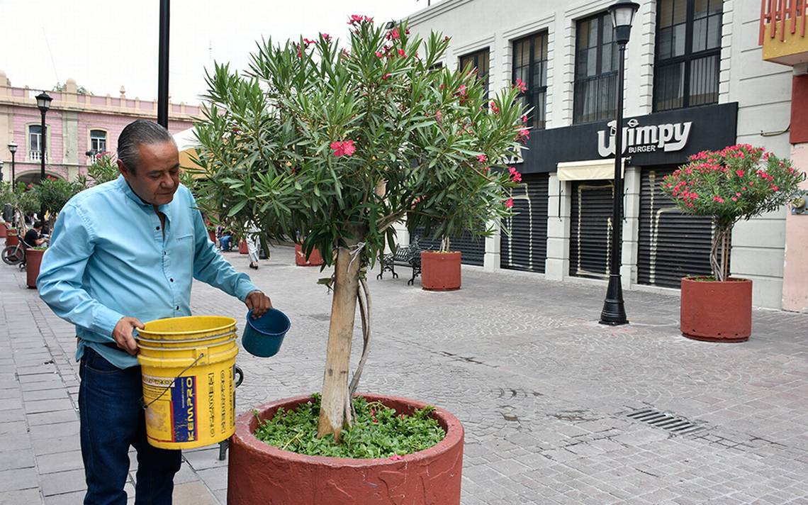 CELAYA, Gto.- Desde hace más de un año, “las plantas que se encuentran en el Andador Góngora han sido descuidadas por parte del municipio”, debido a esto, Germán Pérez, quien es comerciante de la zona, decidió comenzar a darles mantenimiento para evitar que se siguieran secando hasta lograr que florecieran y se enderezaran, sin embrago, solicita las autoridades correspondientes “que tengan más conciencia sobre la importancia de mantener y cuidar las áreas verdes”.