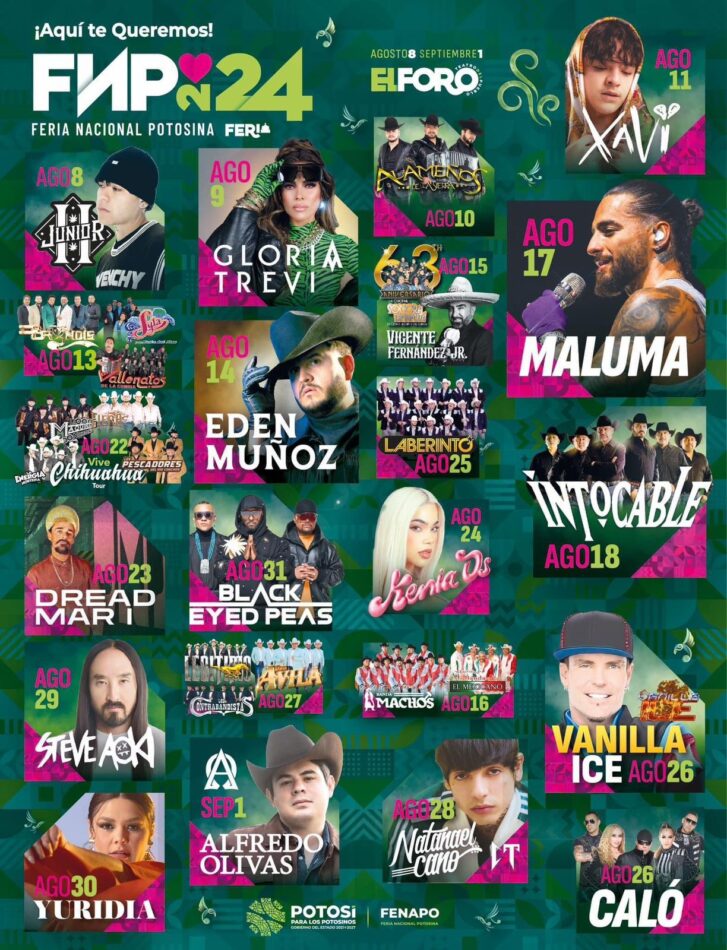 El Gobernador de San Luis Potosí Ricardo Gallardo Cardona, anunció las fechas del cartel del Teatro del Pueblo de la Feria Nacional Potosina (Fenapo), que en esta edición volverá a contar con artistas y espectáculos de talla internacional, destacando la participación estelar de Luis Miguel, quien se presentará por primera vez en esta feria.