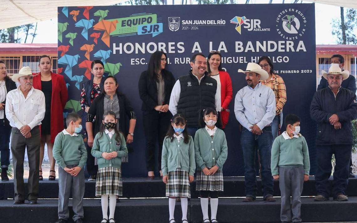 Lo anterior, lo dio a conocer tras llevar a cabo los honores correspondientes en la primaria “Miguel Hidalgo”, en donde se comprometió a trabajar en conjunto con los padres de familia y docentes, puesto que es una de las principales peticiones que tiene esta localidad sanjuanense.