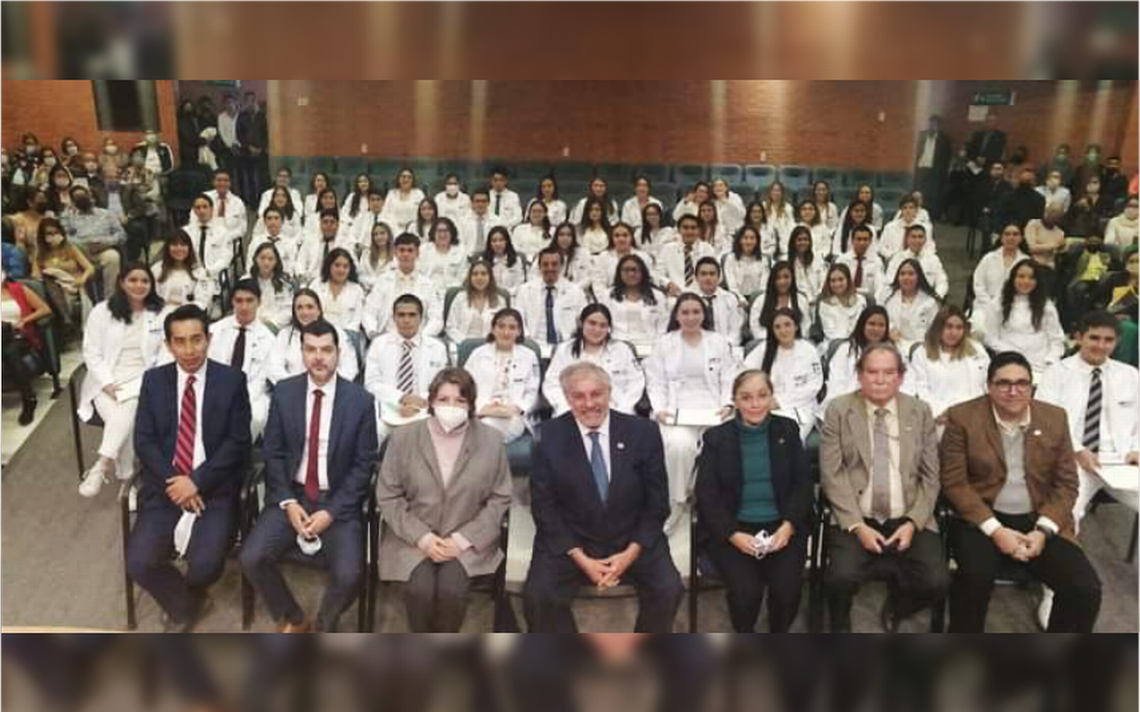 Mientras que el rector de dicha casa de estudios, llevó a cabo la imposición de las batas a los estudiantes de medicina, para posteriormente realizar el juramento del código de ética en el que gratamente participaron los 66 alumnos.