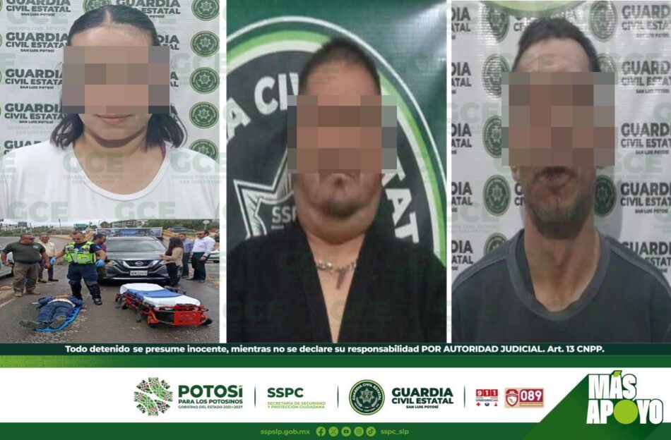 S.L.P.- En atención a diferentes reportes atendidos por los Operadores del Sistema de Emergencias 911, policías de la Guardia Civil Estatal (GCE), detuvieron a dos hombres y una mujer, por el probable delito de lesiones.