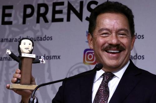 El presidente de la Junta de Coordinación Política y líder de la bancada de Morena en San Lázaro, Ignacio Mier, presenta a Morenachito.