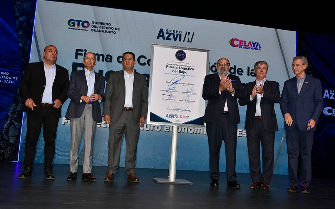 CELAYA, Gto.- El gobernador del estado, Diego Sinhue Rodríguez Vallejo, y el presidente municipal de Celaya, Javier Mendoza Márquez, encabezaron la firma de Consolidación de la Puerta Logística del Bajío, antes llamado Puerto Interior ll, que tendrá una inversión de más de 2 mil 500 millones de pesos en su primera etapa, que se construirá en una superficie de 51 hectáreas. En su mensaje el gobernador recalcó que con este tipo de modelo de inversión público-privada Guanajuato será referente a nivel nacional y el epicentro de la logística ferroviaria del país, por lo que otros estados lo replicarán para tener ingresos propios.