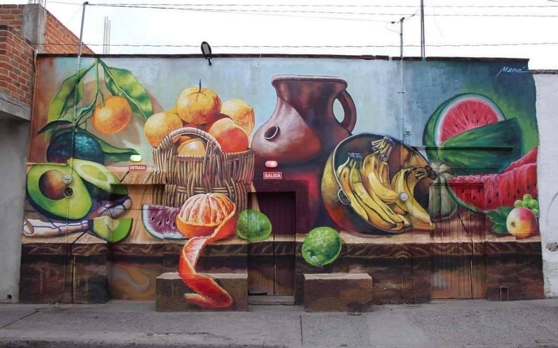 ACÁMBARO, Gto.- El artista Manuel Reyes Servín sorprendió a los habitantes de la comunidad de Chamácuaro, con su mural en tercera dimensión a las afueras de una frutería.