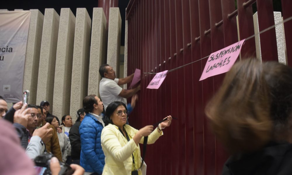 A las 00:00 horas, en el primer instante de hoy fueron cerradas las puertas del edificio sede y la licenciada Ángela Quiroz Mandujano, se encargó de leer el comunicado, con su pliego petitorio.