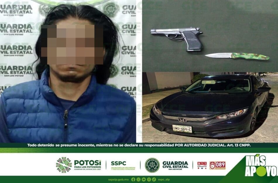 San Luis Potosí, S.L.P.- Una alerta sobre un intento de robo de un automotor, movilizó de forma inmediata a la Guardia Civil Estatal (GCE), quienes se desplazaron hacia la colonia Jardín, en la capital potosina, lugar donde resultó detenido un presunto ladrón de automotores.