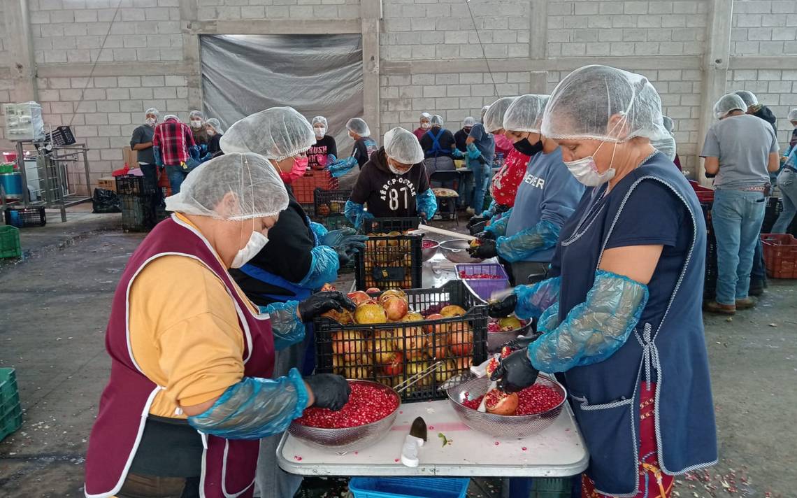 Posteriormente se visitó un lugar donde otro productor realiza el empacado de granada, entera y desgranada, para lo que se requiere mucha a mano de obra.