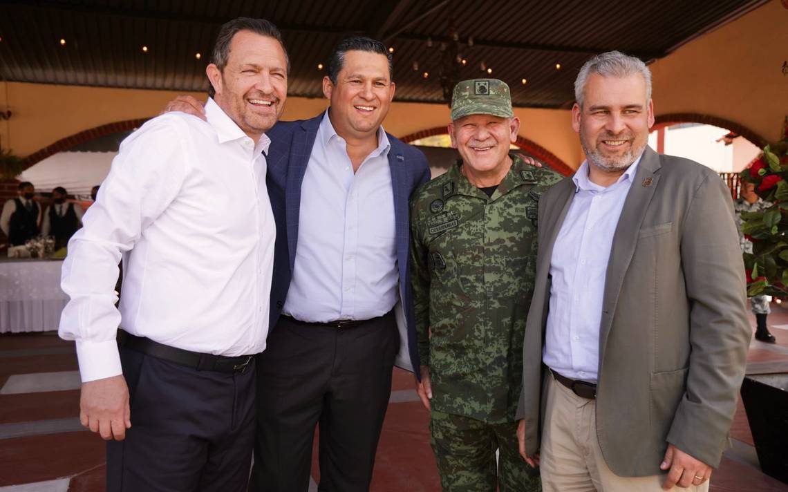 Diego Sinhue Rodríguez Vallejo, gobernador de Guanajuato; Mauricio Kuri González, gobernador de Querétaro, así como Alfredo Ramírez Bedolla, gobernador de Michoacán, sostuvieron una reunión de trabajo en las instalaciones de la XII Región Militar, en donde también estuvo el comandante Enrique Covarrubias López, quien tiene a su mando la jurisdicción de los tres estados, para en conjunto analizar y afinar las estrategias de seguridad a implementar en la zona.