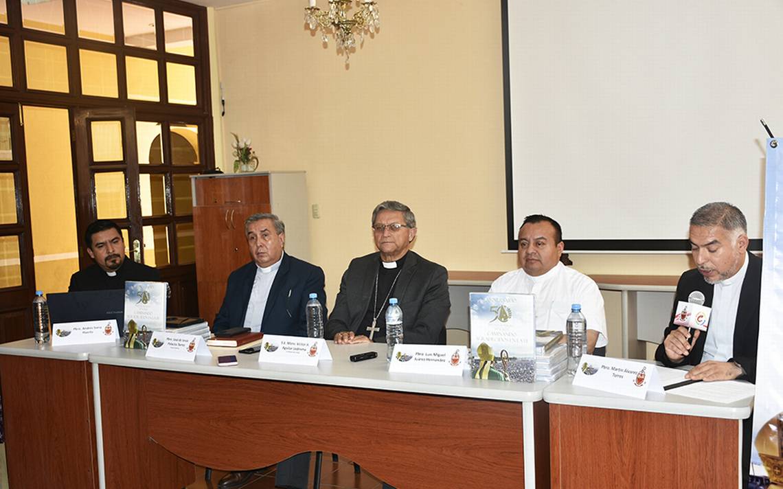 CELAYA, Gto.- En una rueda de prensa, el Obispo de la Diócesis de Celaya, Monseñor Víctor Alejandro Aguilar Ledesma, presentó el libro “Caminando agradecidos en la fe”, el cual recoge los acontecimientos más importantes ocurridos durante los primeros 50 años de erección canónica de la diócesis. El propósito es que las personas conozcan la historia con sus luces y sombras, a fin de no perder sus raíces e identidad. Esta edición tiene 257 páginas, cuenta con casi 900 fotografías, tiene un costo de 450 pesos y está a la venta en el Obispado, así como en la librería del Buen Pastor.