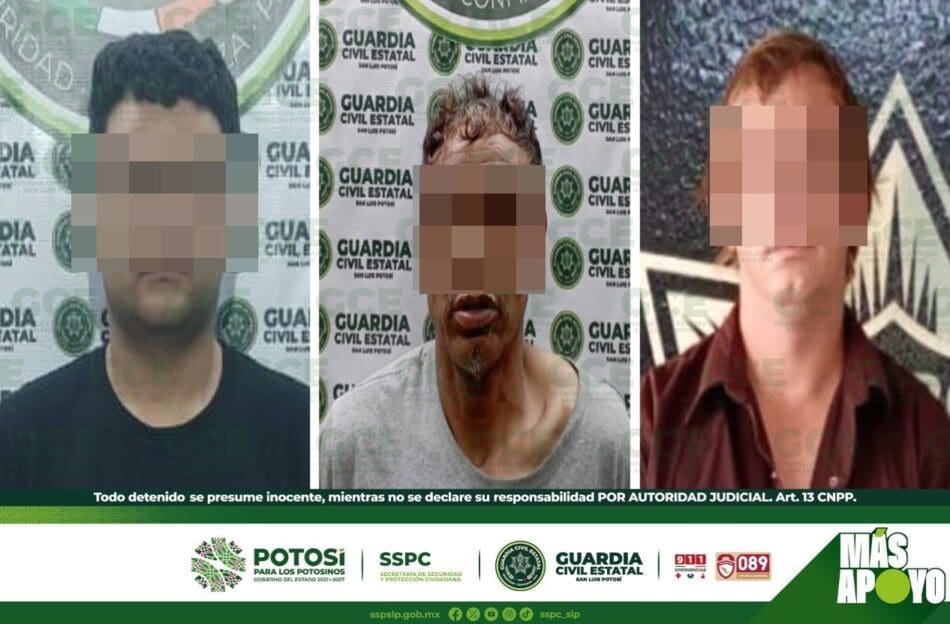 I’mS.L.P.- Acciones contundentes para evitar actos que pongan en peligro el derecho a una vida libre de violencia, permitieron la detención de tres presuntos, luego de que agentes de la Guardia Civil Estatal (GCE), atendieran diversos reportes sobre casos de violencia intrafamiliar.