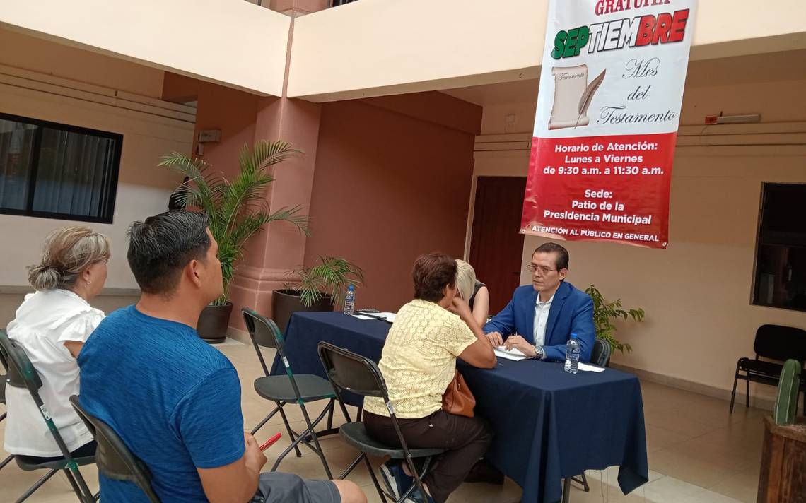 Invitó a que las personas que tengan dudas sobre cualquier tema relacionado con el testamento, o situaciones afines, pueden acudir al módulo ubicado en el patio de la Presidencia Municipal, de 9:30 a 11:30 de la mañana, donde siempre habrá uno o dos notarios disponibles.