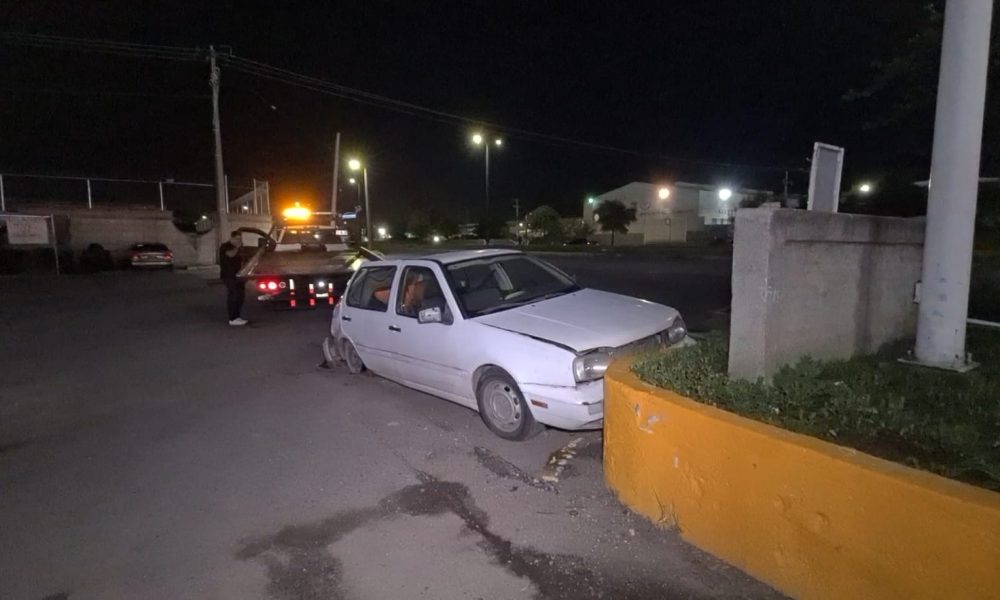 Tracto embistió a un automóvil y lo proyectó contra la guarnición de concreto de un poste, dejando como resultado solo daños materiales. El accidente ocurrió la noche de ayer, en la avenida Constituyentes y Paseo Central, en el municipio de San Juan del Río.