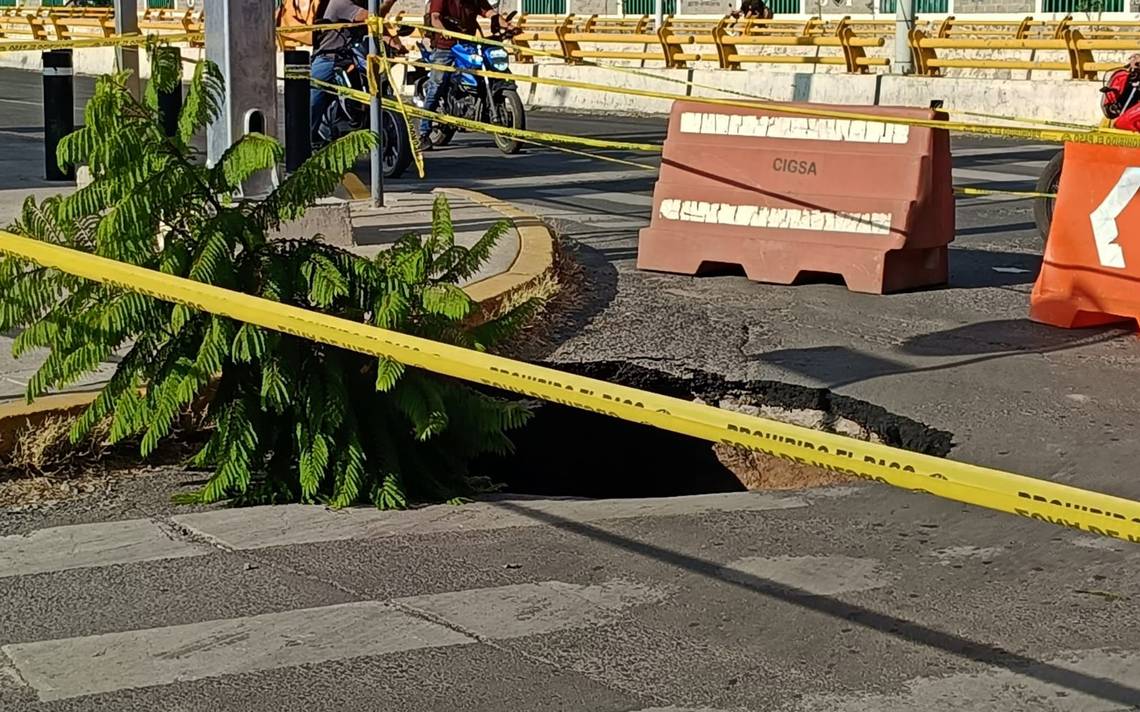 Personas que circulaban sobre la banqueta en Avenida Tecnológico presenciaron como parte del pavimento de la intersección comenzaba a caerse, por lo que al asomarse vieron que conducía a un drenaje de la ciudad por lo que alertaron a Protección Civil sobre el hallazgo, mientras que optaron por colocar un árbol que encontraron tirado cerca del lugar, esto con la intención de alertar a las personas que caminan por la zona y evitar un accidente o que algún automovilista impactara ahí.