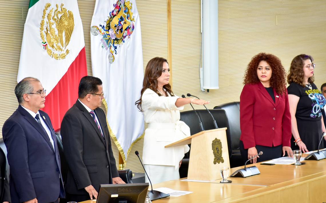 En sesión solemne del Congreso, la mandataria estatal estuvo acompañada de su Gabinete Legal y ampliado, así como de ex gobernadores como Miguel Márquez, Vicente Fox, Carlos Medina Plasencia, Héctor López Santillana y Juan Manuel Oliva.