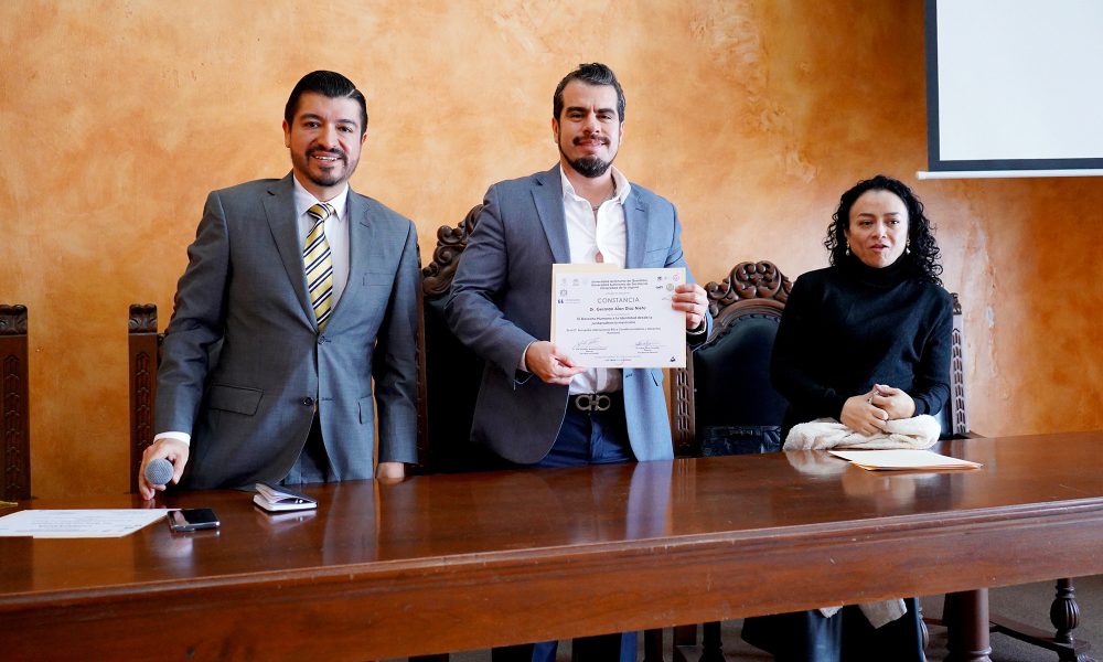 Lugo Ledesma fue el moderador de la primera mesa de trabajo sobre la defensa de los Derechos Humanos desde las perspectivas histórica, filosófica, sociológica y jurídica, en la que participaron los catedráticos de la UAQ, Claudia Abigail Morales Gómez y Gerardo Alan Díaz Nieto, así como María José Guerra Palmero, de la Universidad de La Laguna, Islas Canarias, España.