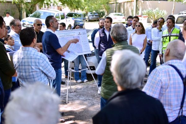 A fin de anunciar una inversión superior a los 32 millones de pesos destinada al reemplazo de la red de agua potable y la sustitución de la tubería de drenaje sanitario, el presidente municipal de Querétaro, Felifer Macías, se reunió con vecinos de la calle Olivos en Jurica Campestre.