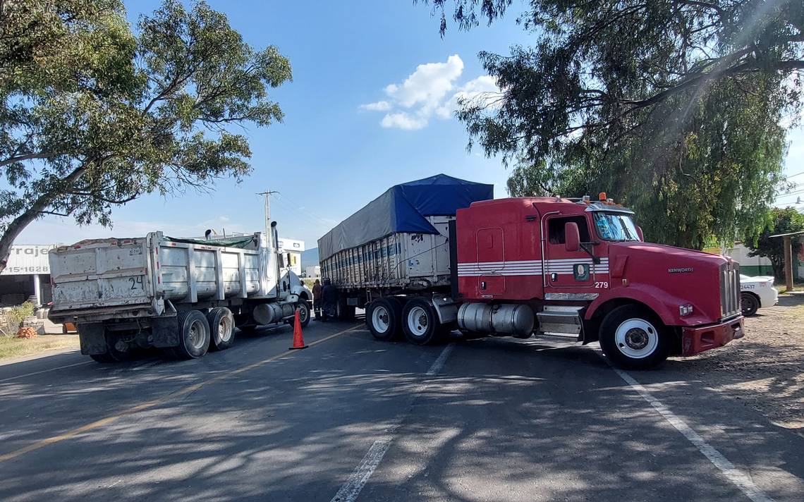 Conductores de transporte de carga pesada bloquearon la carretera federal Galindo-Amealco y la estatal 431 que conduce a Los Cues, a la altura de la comunidad de San José Galindo, en el municipio de San Juan del Río.
