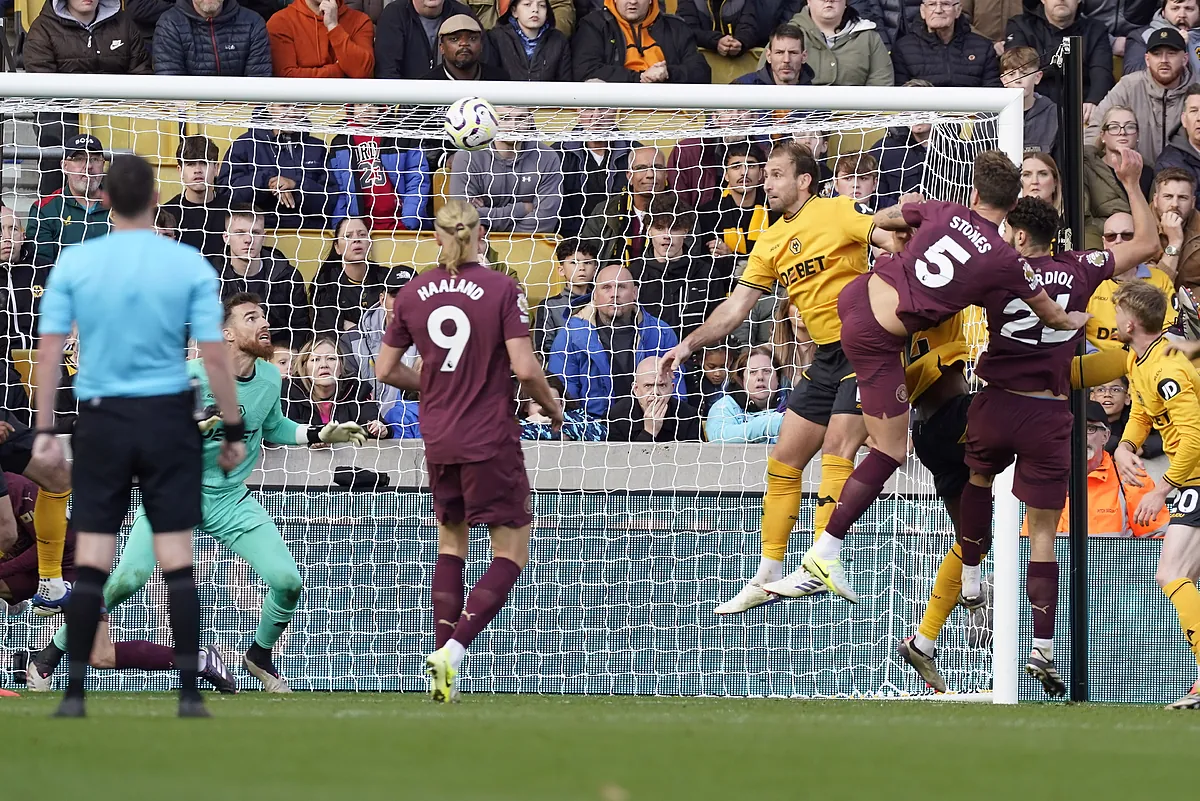 Pese al botín de tres puntos, la visita a los West Midlands confirmó la permeabilidad de la defensa de Pep Guardiola. Apenas habían transcurrido siete minutos cuando Jorgen Strand-Larsen a una gran salida de balón de los Wolves, pese a la presión visitante. Los locales aún pudieron doblar su ventaja, aunque Nelson Semedo erró un clarísimo mano a mano ante Ederson.