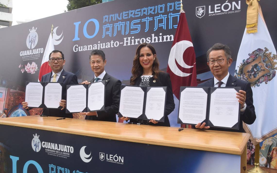 León, Gto.- Con la develación de una escultura conmemorativa y la firma de la Declaración de Adhesión de la Asociación de Amistad, Guanajuato e Hiroshima celebraron este lunes 10 años de hermandad.
