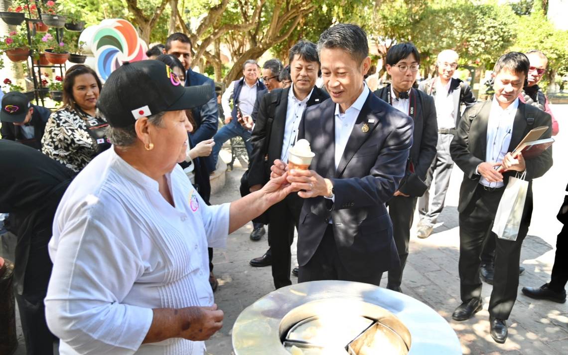 Durante su visita, también se contó con la presencia de Katsumi Itagaki, Cónsul General de Japón en León, Guanajuato; así como Claudia Cristina Villaseñor Aguilar, secretaria de Economía; Lizeth Galván Cortés, Secretaria de Cultura y María Guadalupe Robles León, secretaria de Turismo e Identidad, en el Gobierno del Estado.