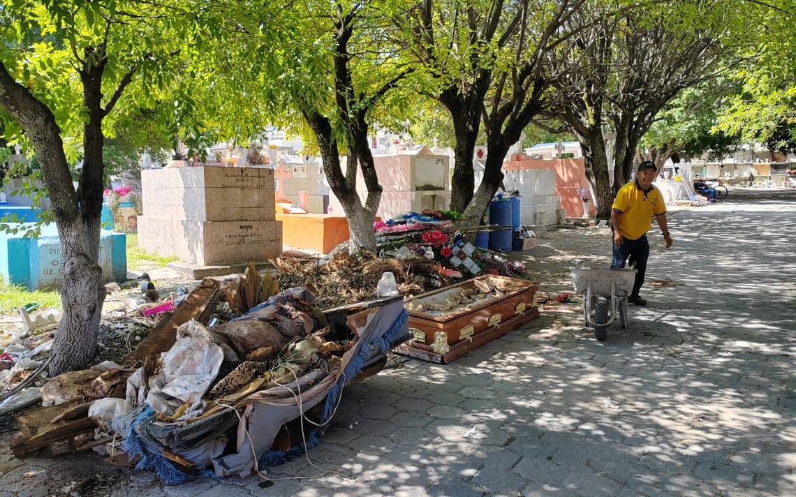 Además, con el apoyo de Servicios Municipales, se han reciclado féretros vacíos que estaban expuestos al aire libre, lo que contribuye a la salubridad del lugar. También se han retirado de los nichos arreglos florales naturales que ya estaban marchitos, como los artificiales en muy malas condiciones, y se han llevado a cabo labores de poda de pasto y árboles. Hasta el momento, se ha retirado más de una tonelada y media de basura.