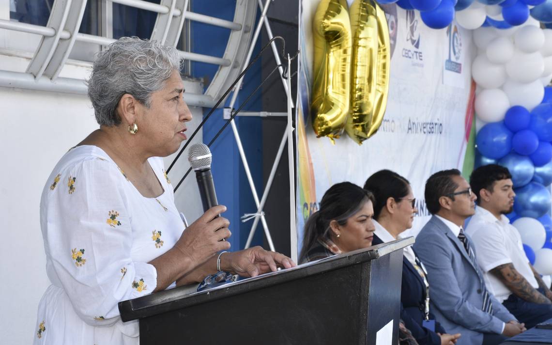 María Dolores López Arellano, directora del CECyTE Celaya III, compartió que en estos 10 años la institución ha logrado posicionarse en la zona, la cual está en constante crecimiento. Recordó que el 8 de agosto de 2014, la escuela entró en operaciones con una matrícula total de 104 alumnos para el ciclo escolar 2014-2015, por lo que, a la fecha han egresado ocho generaciones.