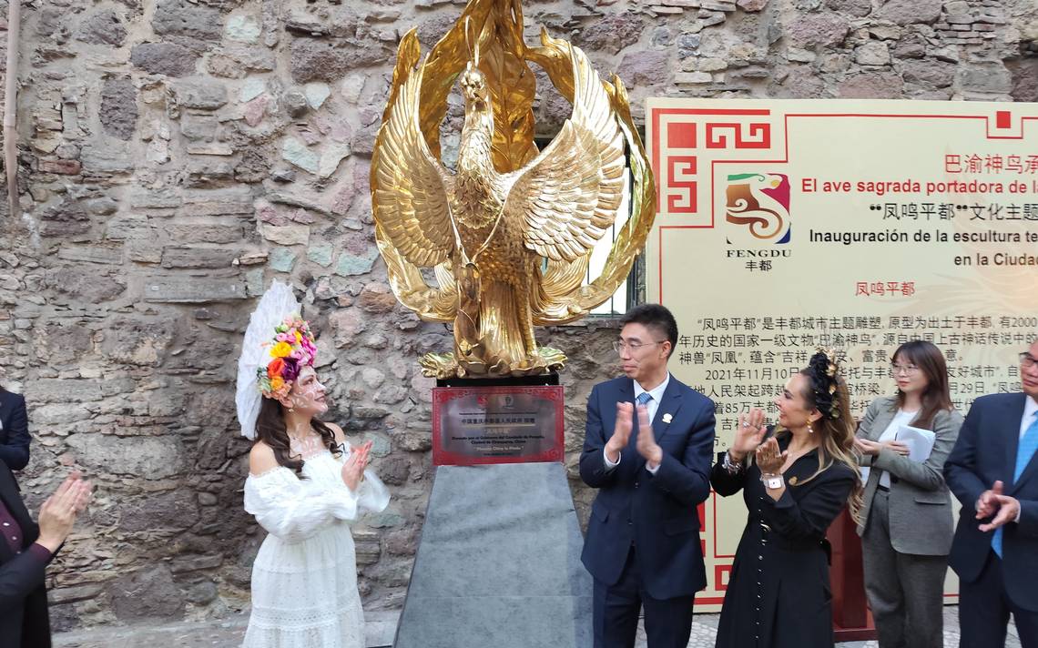 Al respecto, el Alcalde del Gobierno del Condado de Fengdu, TANG Shouyuan dijo que la escultura donada es un ave sagrada de más de 2000 mil años de antigüedad y que contienen los significativos del pueblo de paz, hospicio, riqueza y posibilidades, además de las cualidades de la región “gente positiva y trabajadora”.