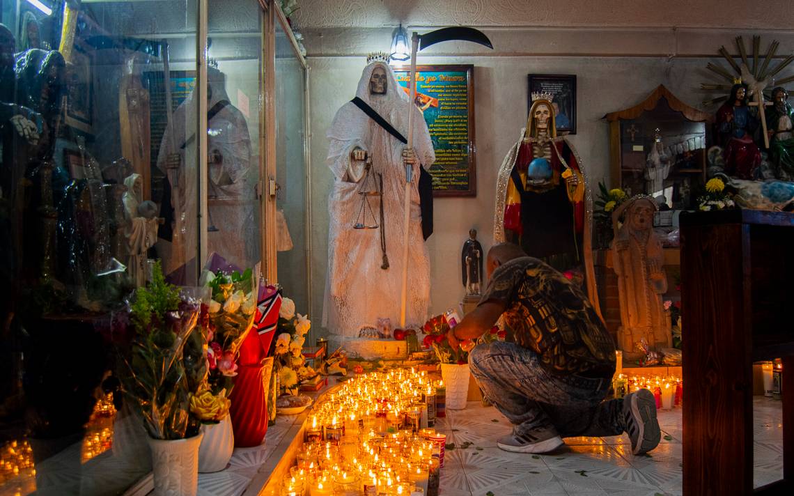 Mientras avanzan las horas, son más los devotos que llegan al recinto. Padres con infantes en brazos, madres acompañadas de adolescentes que cargan imágenes de la Santa Muerte. Uno a uno se introduce a esa atmosfera donde el olor a cigarrillo e incienso predomina, donde el calor producido por las velas provoca el surgimiento de gotas de sudor en las frentes de quienes se agrupan para hacer plegarias.