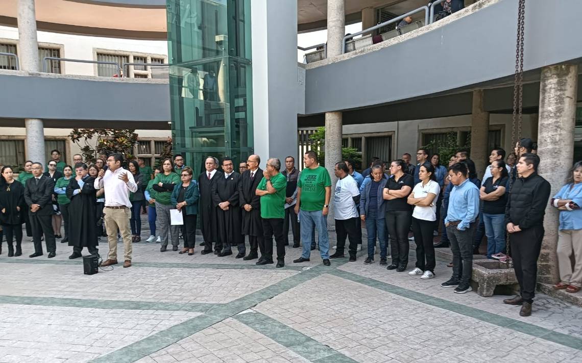 Sin interrumpir labores, en la manifestación los jueces en lo familiar, Alfredo Álvaro León y León Flores Avitia, informaron que la manifestación pacífica es en abono al voto del proyecto contra la Reforma Constitucional.