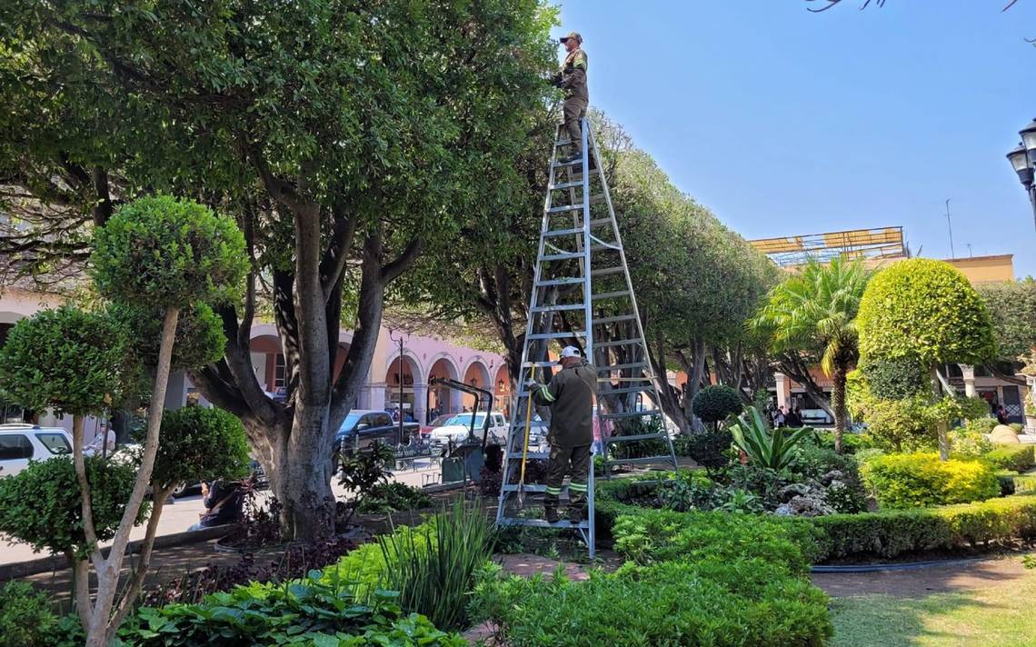 CELAYA,Gto.- Para combatir la plaga de trips y pulgón que afectaron el arbolado del jardín principal, y con el objetivo de motivar el crecimiento de nuevo follaje, el gobierno municipal, a través de la Dirección de Servicios Municipales, realizó una poda de saneamiento.